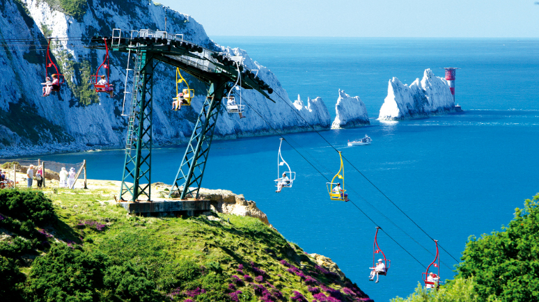 The beach at the Needles has crystal clear water and here you can take a boat trip to see the landscape from a different point of view. The Needles Landmark Attraction park has fairground rides, shops, restaurants, and places to drink.
