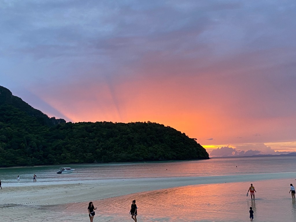 Now, this might seem a cop-out to include on one of our things to-do list, but honestly, I have never seen a better sunset than on Phi Phi beach. If the weather conditions are good, purples, golds, and pinks illuminate the sky that sits between the two cliff sides enclosing Phi Phi beach. The beach itself is so calm and quiet at this time of night, so there really is nothing better to do than sit with a cold beer and watch the sun go down.
