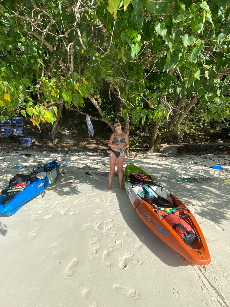 On Phi Phi beach you can rent a kayak for a very good price. I believe we hired a two-person Kayak for 300 baht (£6.90), which allowed us to have it for two hours. That was more than enough time to kayak over to Monkey Beach (took around 15 minutes) and hang out there for over an hour. We were unlucky and didn’t actually see any monkeys, but it was still such a beautiful beach to be at and there was a sense of accomplishment after having rowed there ourselves.