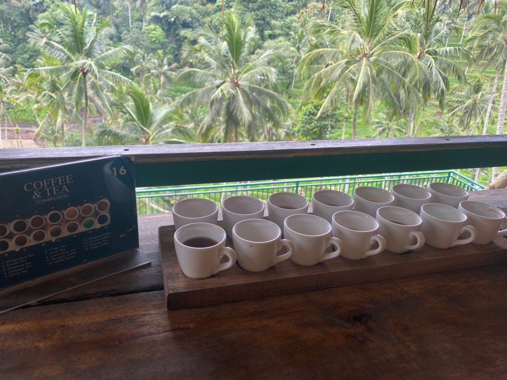 Alas Harum really blew away our expectations. We thought it was just going to be a coffee plantation where you can do a tasting session, however it is so much more than that. You pay 20,000 per person to enter which gives you access to the coffee plantation, restaurant, and the infinity pools they had. We unfortunately didn’t know that there was a pool there so didn’t bring our swimming costumes! Once inside we got to learn how the coffee is made and try 14 different coffees and teas, all for the price of just 118,000 which is around £6.77. They also have big swings and a bicycle zip wire there and plenty of other photo opportunities.